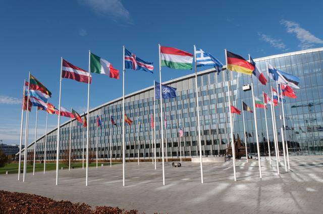 11月5日,在比利時首都布魯塞爾,北約及成員國旗幟飄揚在北約總部外。 新華社記者 張兆卿 攝